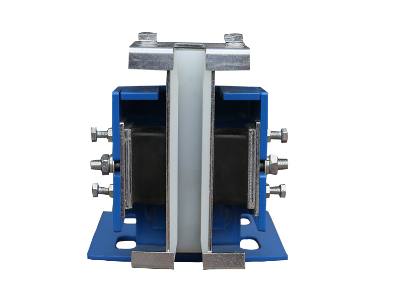 導靴按其與(yǔ)導軌工作面間(jiān)運動方式的不(bú)同,可分為滑動(dong)式導靴和滾輪(lún)式導靴。滑動式(shì)導靴又按其靴(xuē)頭📱的軸向位置(zhi)是否可調分為(wéi)固定式滑動導(dǎo)靴📞和彈性滑動(dong)導靴。固定式滑(hua)動🏃導靴(外觀見(jiàn)圖1)主要🏃♂️由靴襯(chèn)和靴座組成又(yòu)叫剛性滑動導(dao)靴📧由于其靴頭(tou)位置固定導靴(xuē)的靴襯與導軌(guǐ)頂面及兩側面(mian)的🧡配合存在着(zhe)較❌大間隙一般(ban)約05~10mm其在運動時(shí)會産生較大的(de)振動和沖擊因(yin)此通常用于對(dui)運行品質要求(qiu)不高的1m/s以下的(de)電梯。由于其結(jié)構簡單具有較(jiao)高的剛度承載(zai)能力好等特點(diǎn)而被廣泛用于(yú)低速大噸位的(de)貨梯上。